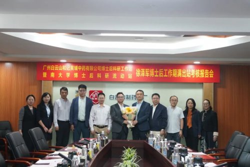 2025年11月5日、7日,广州白云山和记黄埔中药有限公司(以下简称“白云山和记黄埔中药”)博士后科研工作站2025年度博士后出站考核报告会先后举行。徐泽军博士与余汇博士凭借扎实的研究成果与突出的学术贡献,均以“优秀”等次顺利通过考核,圆满完成在站科研任务,标志着白云山和记黄埔中药博士后科研工作站人才培育再结硕果。