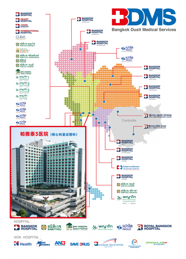 这两家医院同属于BDMS集团(曼谷杜斯特医疗集团),该集团是泰国规模较大的私立医疗集团之一,旗下拥有50余家品牌医院。